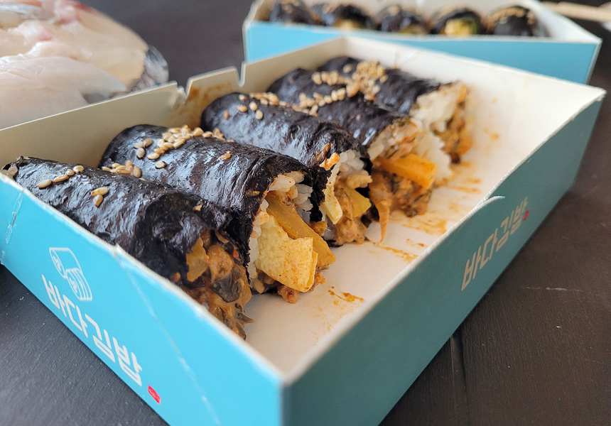 우리는 밥탄수의 민족이기 때문에, 바다김밥의 갓참치김밥과 명란오믈렛김밥도 구입했고, 동생과 조카가 잘 먹었고.